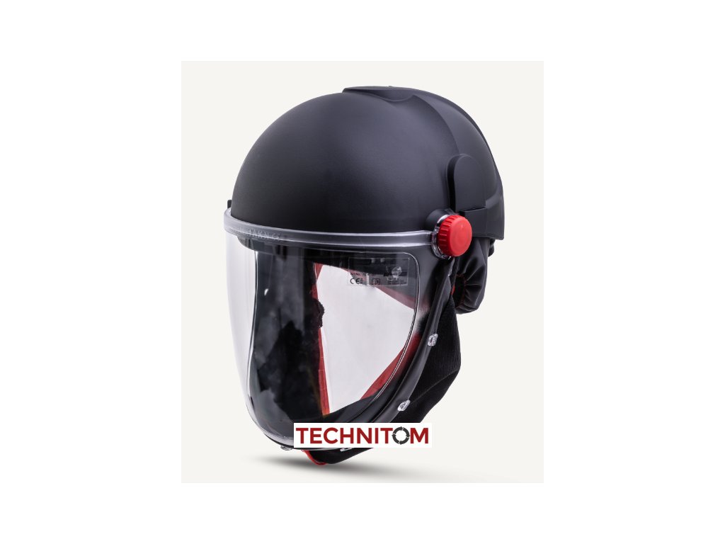 Kombinace brusného štítu a bezpečnostní přilby s rozvodem vzduchu. Zaručuje ochranu hlavy, zraku, obličeje, dýchacích cest a sluchu. Kvalitní torický zorník s úpravou proti mlžení a poškrábání zaručuje perfektní vidění a zvýšenou odolnost. Snadná výměna zorníků za DIN4 či DIN5 dává možnost použití pro plasmové a plamenové metody.