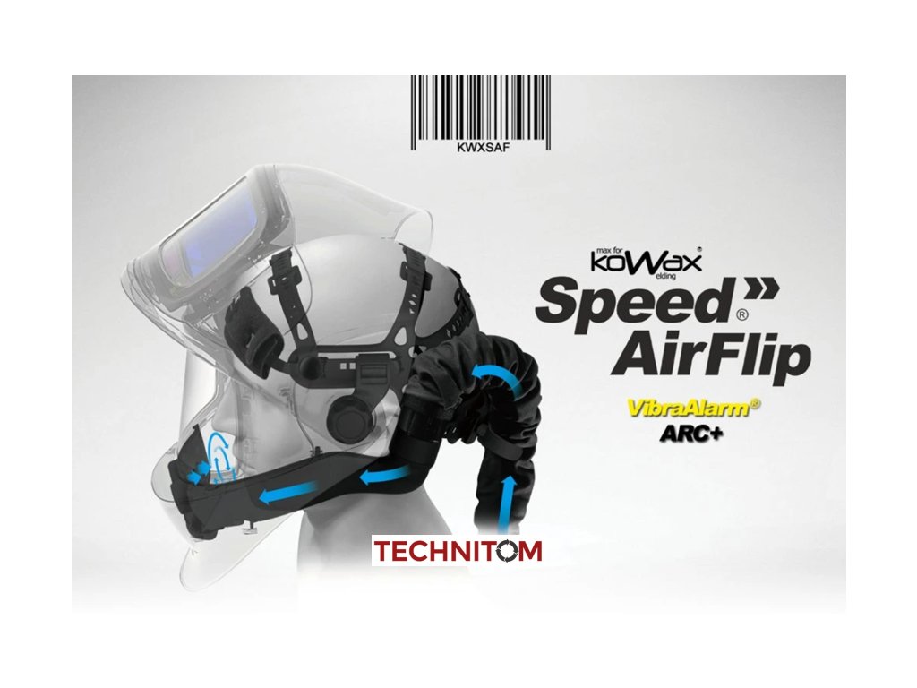 Nová špičková filtračně ventilační jednotka KOWAX® Speed Air® kombinovaná s novou kuklou s odklopným filtrem. KOWAX® FlipARC+ nabízí excelentní ochranu proti zplodinám vznikajícím při svařování, broušení apod.