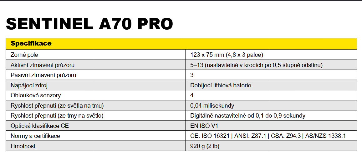 Svářečská kukla Sentinel A70 Pro je vyrobena pro realitu těžkého průmyslu, dlouhé směny, náročné podmínky a neustálé jiskry. Díky širokému výhledu a preciznímu digitálnímu ovládání budete mít vše pod kontrolou a díky odklápěcí konstrukci a naddimenzovanému ochrannému štítu pro broušení budete moci pracovat bez přerušení 🌟