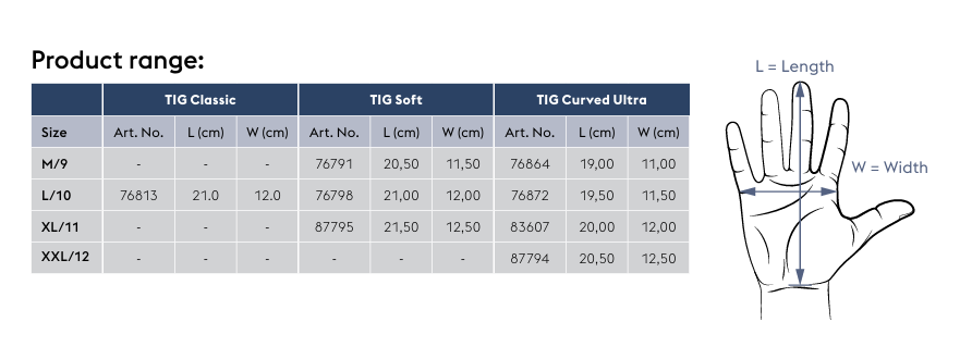 TIG Soft - Maximální flexibilita a obratnost díky méně švům, ideální pro precizní práci.