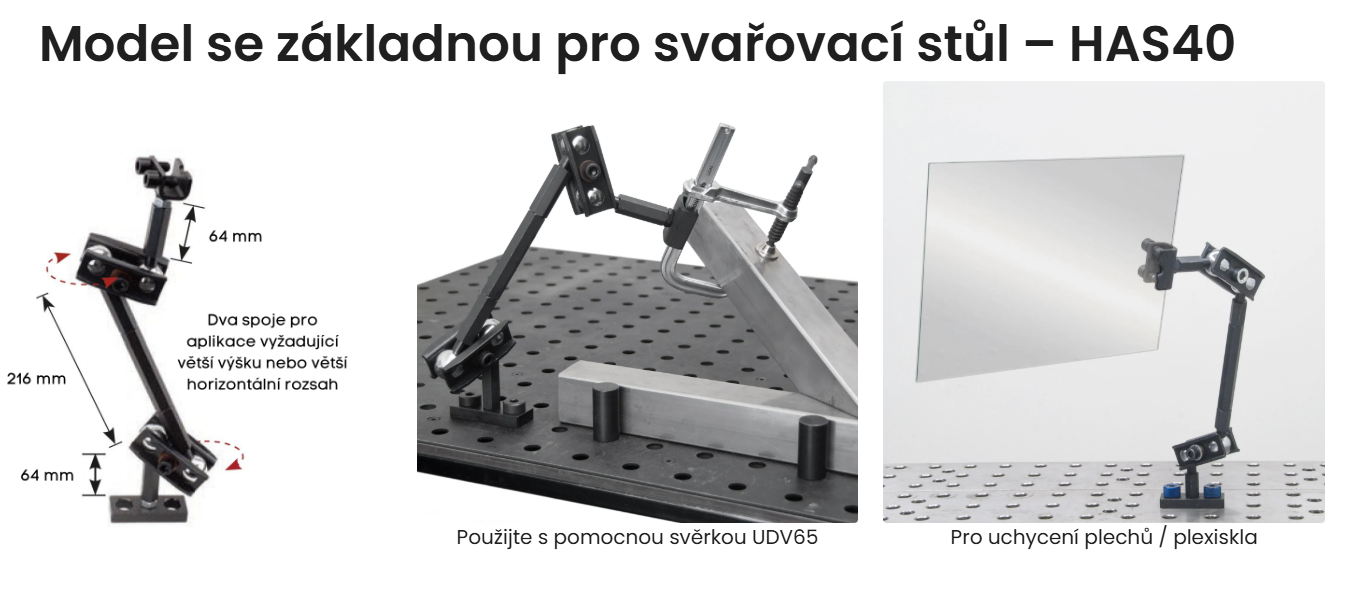 Modulární svěrky "třetí ruka" - model pro svařovací stoly (HAS40)