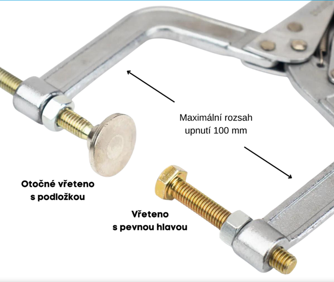 Otvory se závitem v čelistech umožňují montáž příslušenství.