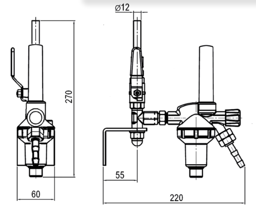 Jednoodbočná bodová stanice s průtokoměrem Argon / CO₂ 30 l/min GCE