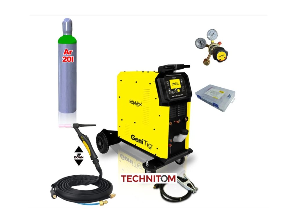 GENITIG AC/DC 320 LCD 5" s vodním chlazením, hořákem 18W 4m, sadou náhradních dílů, redukčním ventilem a lahví 20l + magnetický držák hořáku TIG ZDARMA