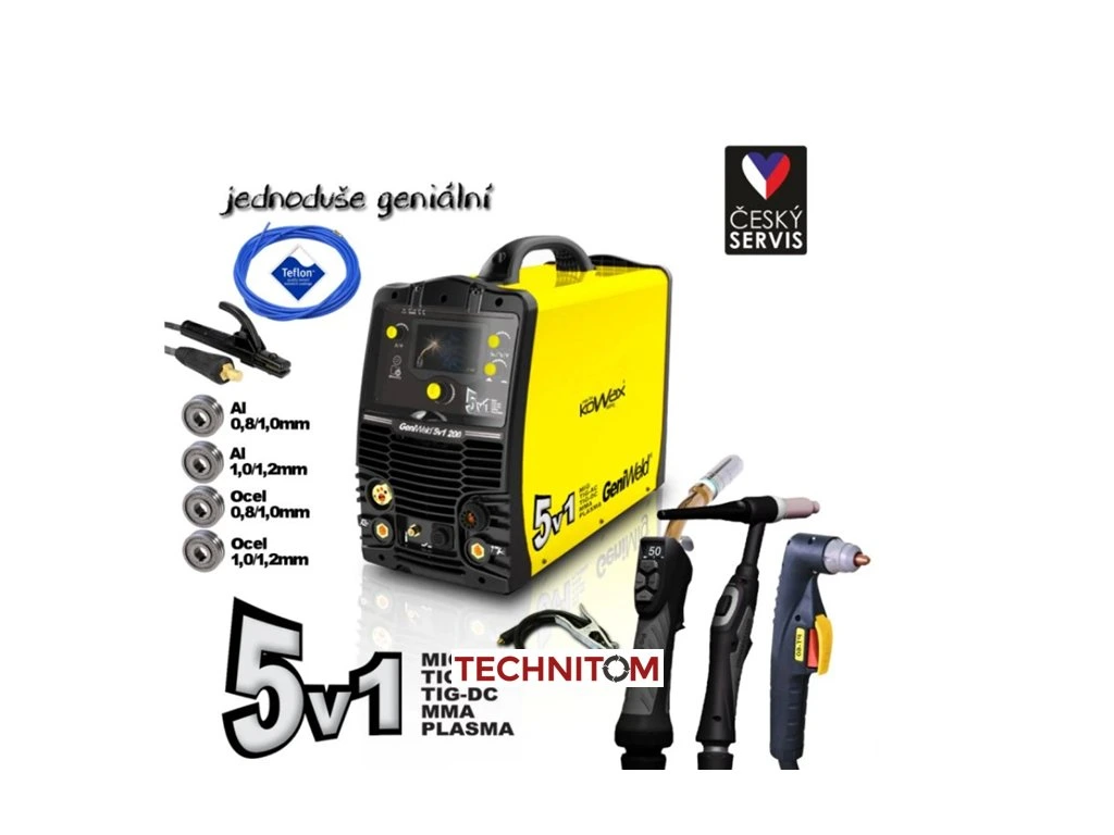 Svářecí invertor GeniWeld 5v1 200 (MIG/PLASMA/ACTIG/DCTIG/MMA) + kukla PM3000 ZDARMA