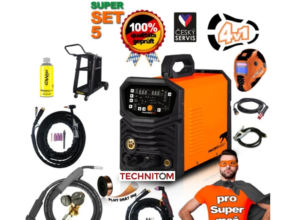 PANTERMAX PanterWeld 4v1 200 MULTIFUNKČNÍ invertorová svářečka MIG/TIG/MMA/PLAZMA (set S05SBL) vč. samostmívací kukly Pantermax 1000
