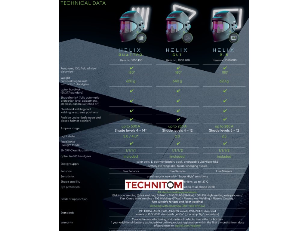 Helix clt je pro vás ideální, pokud potřebujete pohodlnou funkci vysunutí pro přepínání mezi různými úkoly a také chcete mít při svařování velké zorné pole s extrémně jasným a věrným barevným viděním.