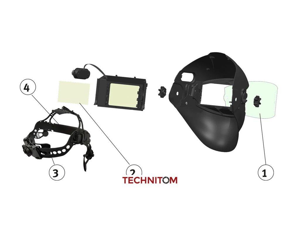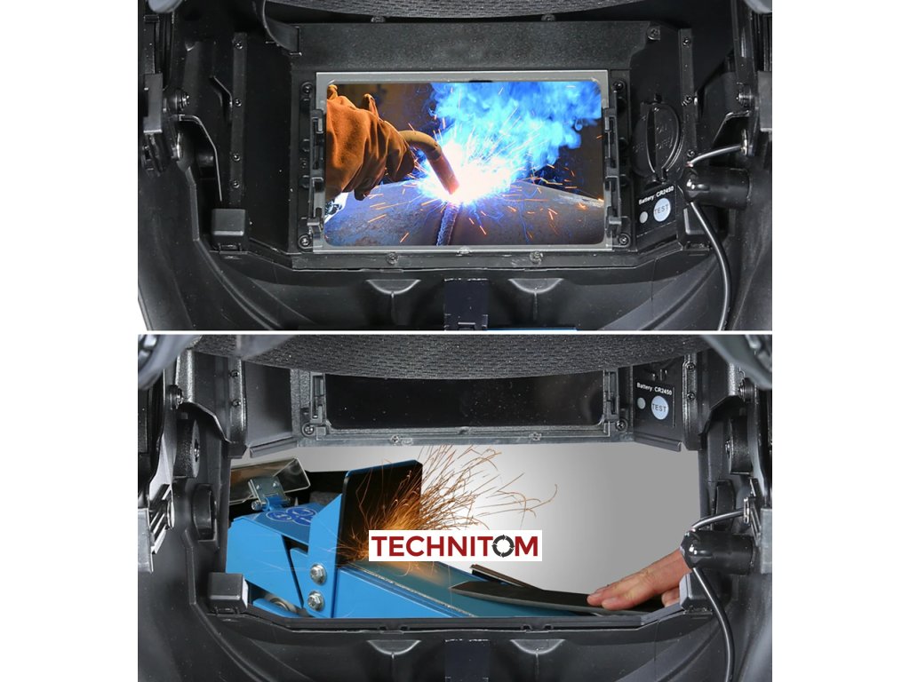 - Svařovací kukla je vybavena výklopným systémem: možnost vyklopení kazety nahoru, aby bylo možné např. při broušení sledovat práci přes čirý ochranný štít