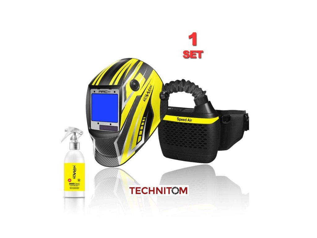 Dodávka kompletu obsahuje: Kuklu KWX820ARC++ se vzduchovým kanálem a samozatmívací kazetou, přívodní hadice s ochranným nehořlavým obalem, jednotka SpeedAir s filtry (lapač jisker, předfiltr, filtr částicový), šle, baterie Li-ion standard, nabíječka, průtokoměr a návod k obsluze.