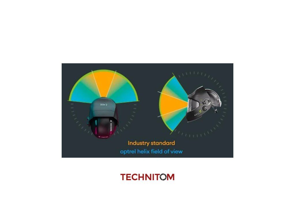 Panoramatické XXL zorné pole 180° kukly Helix Pure Air je 6x větší než mají standardní svařovací přilby (100 x 50 mm), přičemž si kukla zachovává nízkou hmotnost 620 gramů. Toto je docíleno výřezem v oblasti nosu, který umožnil přiblížit svařovací filtr blíže k obličeji a tím se rozšířilo zorné pole svářeče. Díky zřetelnému oddělení od oblasti úst už na displej nedýcháte a zabráníte tak poškození antireflexního skla.